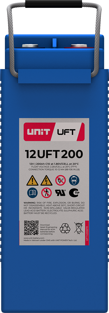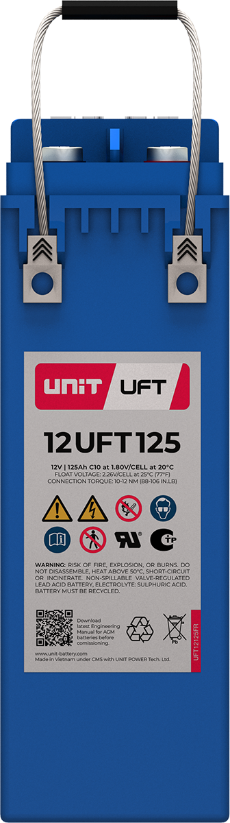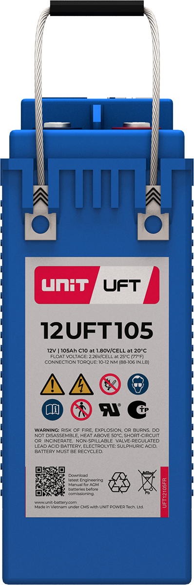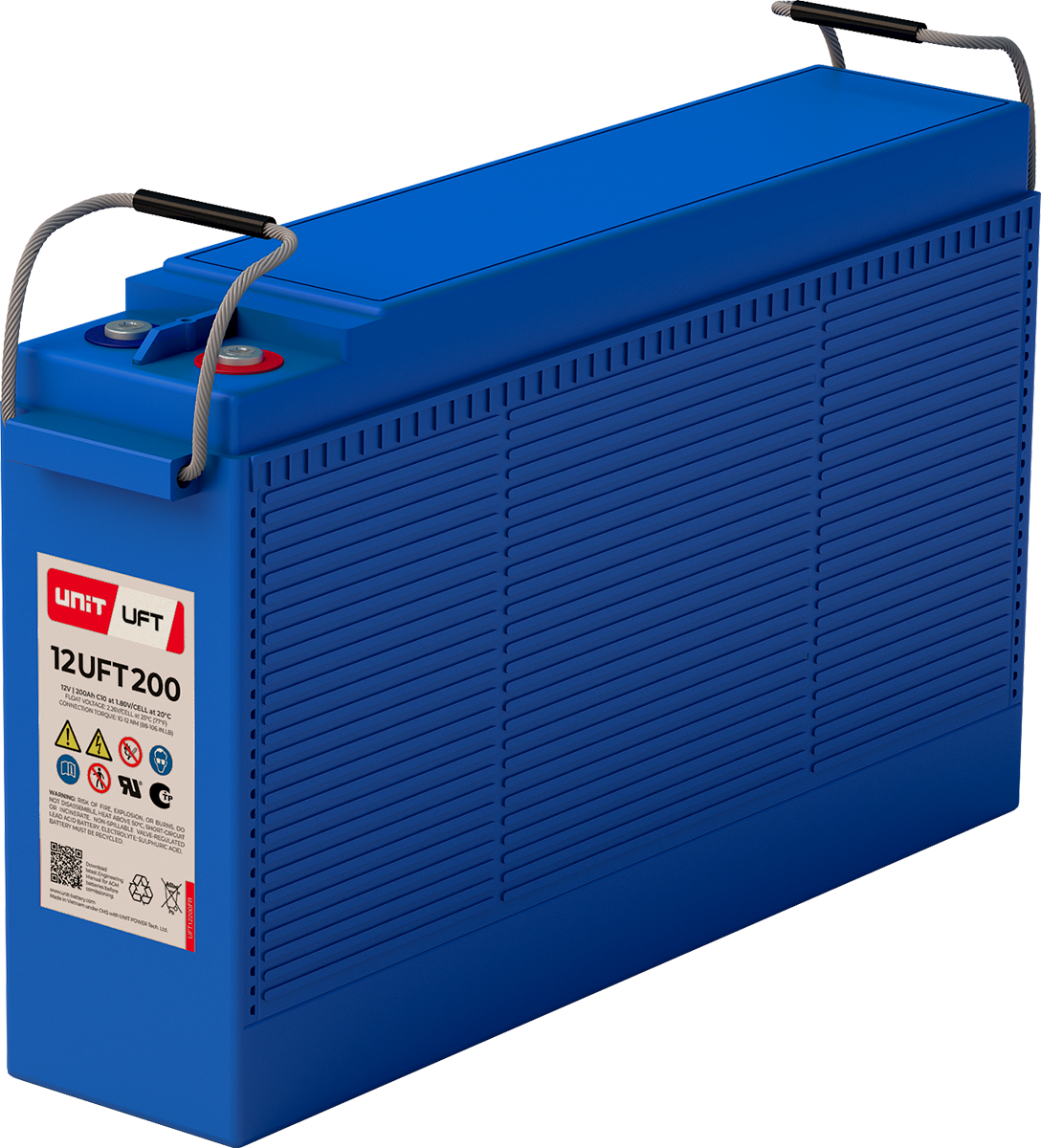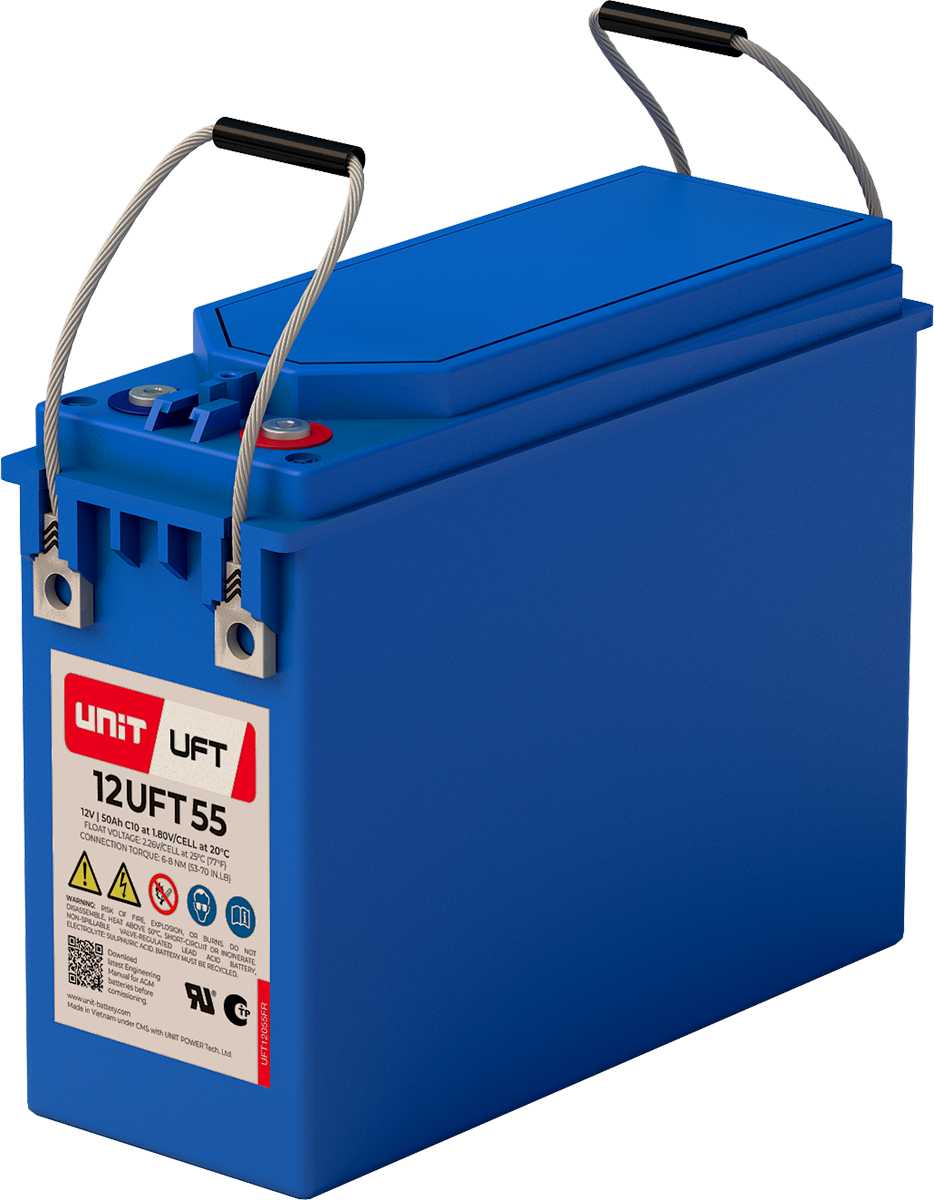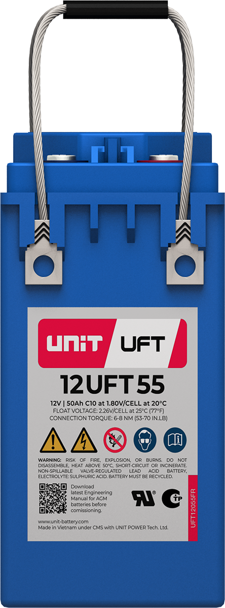 Аккумулятор UNIT 12UFT55 стационарный свинцово кислотный, емкостью 56 Ач и напряжением 12В. Серия UFT - фронттерминальные с увеличенным сроком службы. Технология AGM абсолютно не содержит электролит в жидком виде, потому что он удерживается в пористом стекловолоконном сепараторе. АКБ герметизированная, эксплуатация в любом положении, не боятся опрокидывания. Система внутренней рекомбинации газов VRLA. Низкий саморазряд, корпус из негорючего материала. Никакое техническое обслуживание не требуется в течение всего времени работы. Не нужна доливка воды и постоянная проверка уровня электролита. Главной особенностью этой модели является глубокий разряд. В составе присутствует свинец высокой химической очистки и специальные присадки, в результате чего срок службы становится длиннее и составляет примерно 15 лет, то есть, вдвое больше обычной стандартной батареи