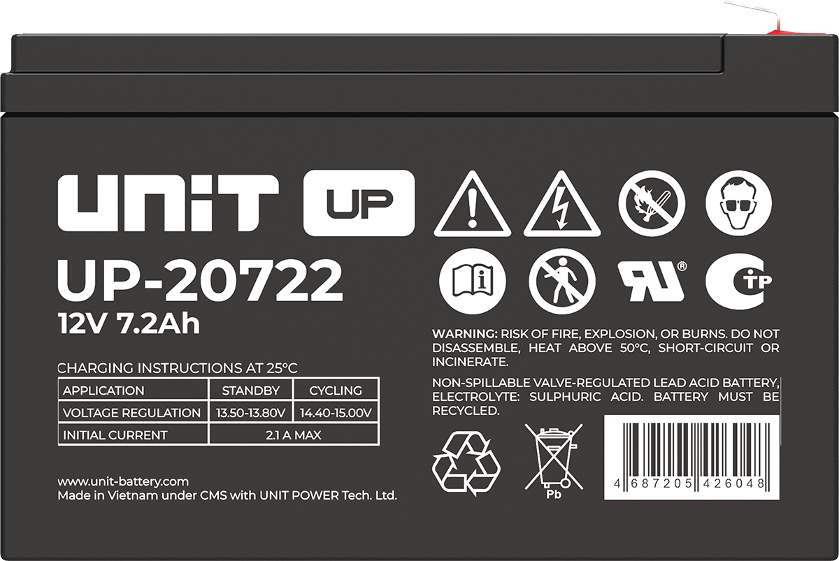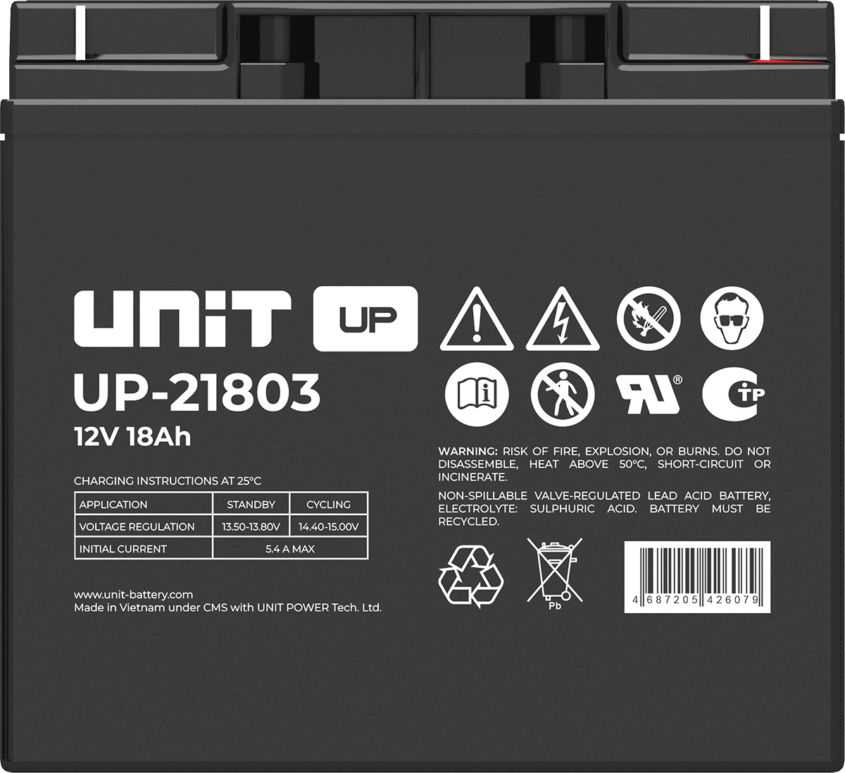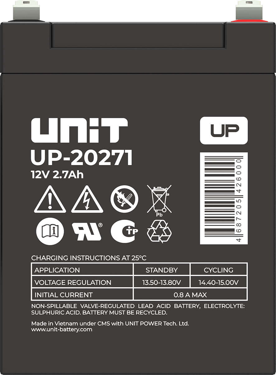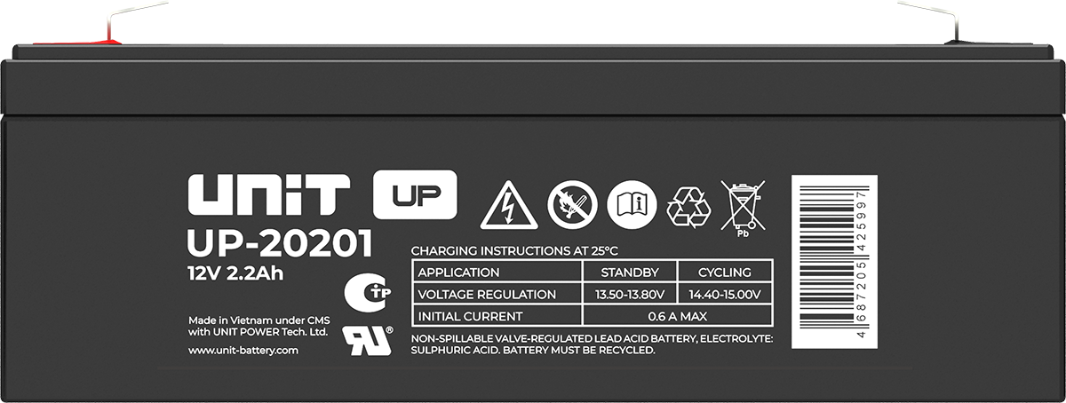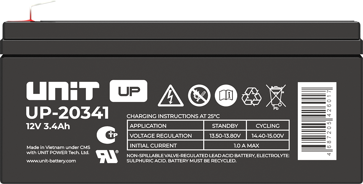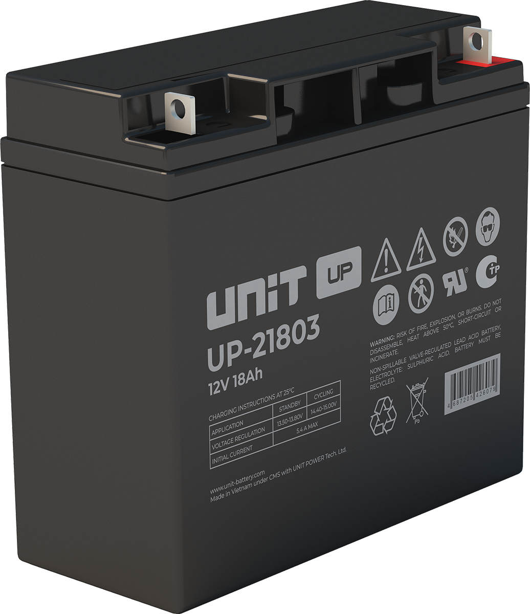 Аккумулятор UNIT UP-10301 стационарный свинцово кислотный, емкостью 3 Ач и напряжением 6В. Серия UP - универсальные, стандартные. Технология AGM абсолютно не содержит электролит в жидком виде, потому что он удерживается в пористом стекловолоконном сепараторе. АКБ герметизированная, эксплуатация в любом положении, не боятся опрокидывания. Система внутренней рекомбинации газов VRLA. Низкий саморазряд, корпус из негорючего материала. Никакое техническое обслуживание не требуется в течение всего времени работы. Не нужна доливка воды и постоянная проверка уровня электролита. Главной особенностью этой модели является глубокий разряд. В составе присутствует свинец высокой химической очистки и специальные присадки, в результате чего срок службы становится длиннее и составляет примерно 6-8 лет, то есть, вдвое больше обычной стандартной батареи