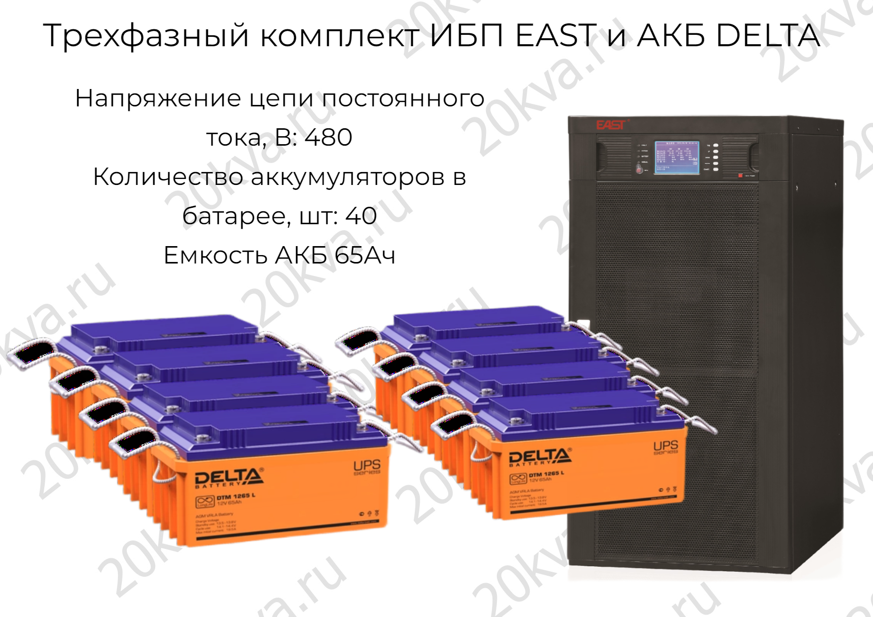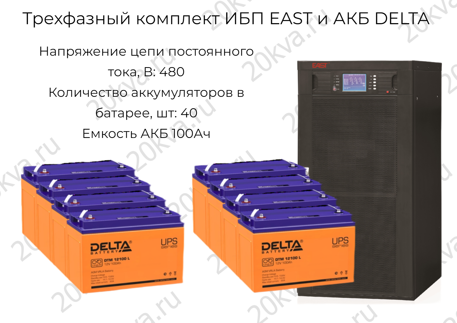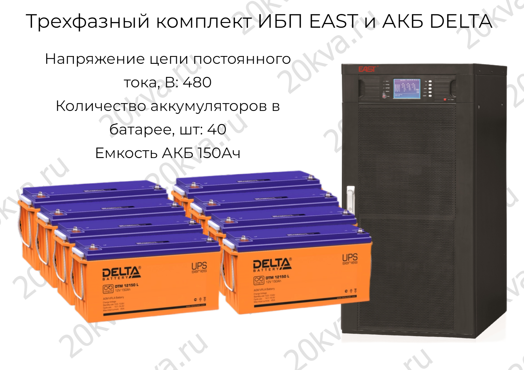 Трехфазный комплект ИБП EAST и АКБ DELTA | 160 кВА на 5 мин